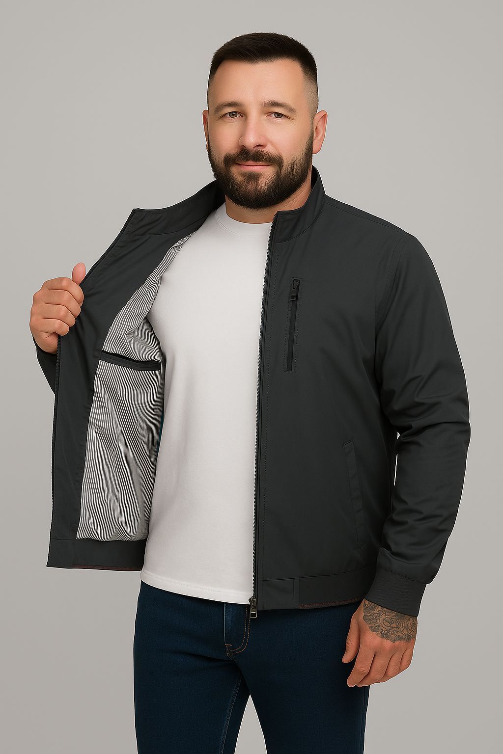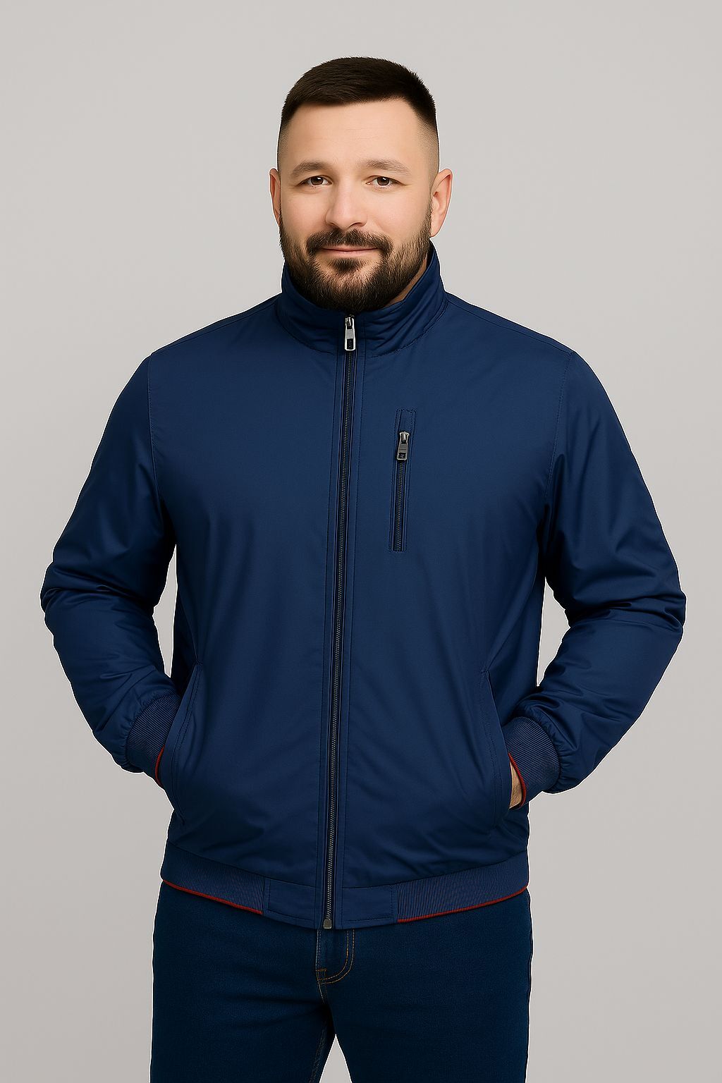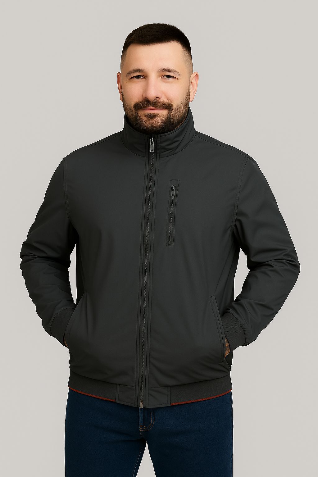 Надежная застежка-молния с металлическим бегунком Универсальный фасон и посадка — отлично смотрится на мужчинах любого телосложения.
