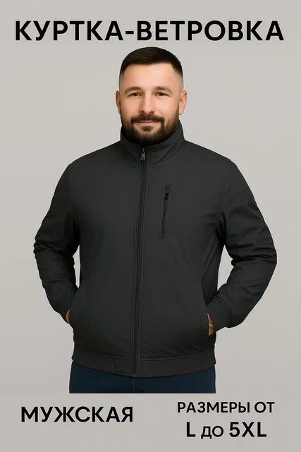 Куртка-ветровка мужская на молнии с карманами, повседневная, демисезонная, от +10°C Мужская куртка-ветровка — практичный и стильный выбор для демисезонной погоды.